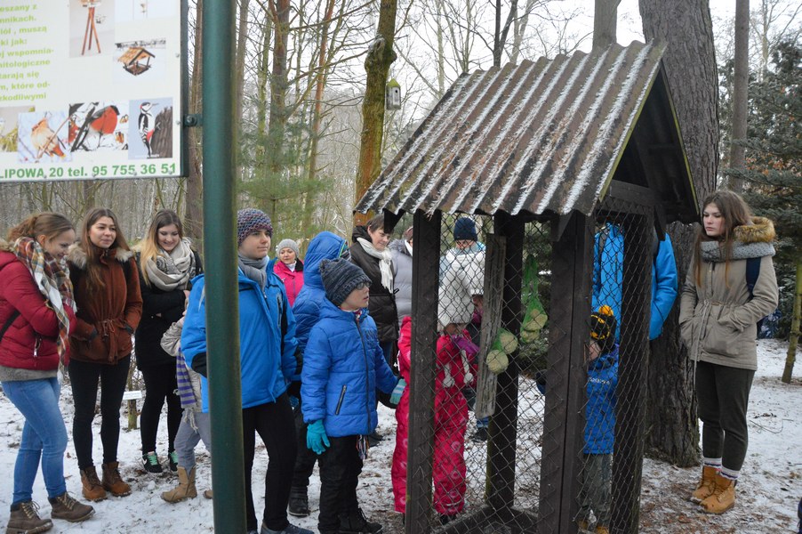 Uczestnicy projektu, to jest 30 uczniów Specjalnego Ośrodka Szkolno-Wychowawczego w Sulęcinie oraz 40 uczniów sulęcińskich szkół, tj. Szkoły Podstawowej im. Polskich Olimpijczyków, Gimnazjum im. Jana Pawła II, I Liceum Ogólnokształcącego im. Adama Mickiewicza, Zespołu Szkół Licealnych Zawodowych im. Unii Europejskiej odbyli w Szkółce Leśnej w Ostrowie „żywą lekcję przyrody”. Gospodarzami zimowej akcji był pan Arkadiusz Senyszyn i pan Marek Pławuszewski z Nadleśnictwa Sulęcin, którzy przybliżyli uczniom temat zimowego dokarmiania ptaków i zwierząt leśnych. Zajęcia odbyły się w dwóch grupach - grupa „młodsza” pozostała z panem Arkiem na terenie szkółki leśnej, natomiast grupa „starsza” powędrowała z panem Markiem na Małą Retencję. Podczas zimowej, integracyjnej wędrówki uczniowie mogli wysłuchać bardzo ciekawych (nie tylko) przyrodniczych opowieści pana Marka. Młodzi Sulęcinianie poznali najważniejsze zasady dokarmiania ptaków i zwierząt oraz dowiedzieli czym jest retencja wody, i jakie ma znaczenie dla wzbogacania zasobów przyrodniczych.