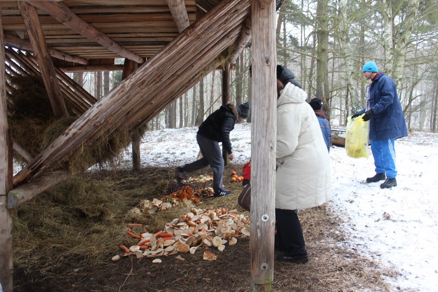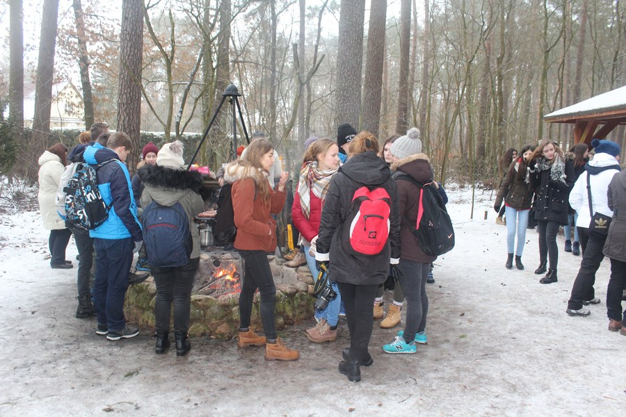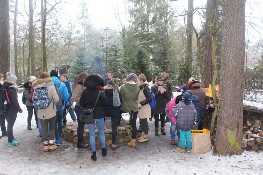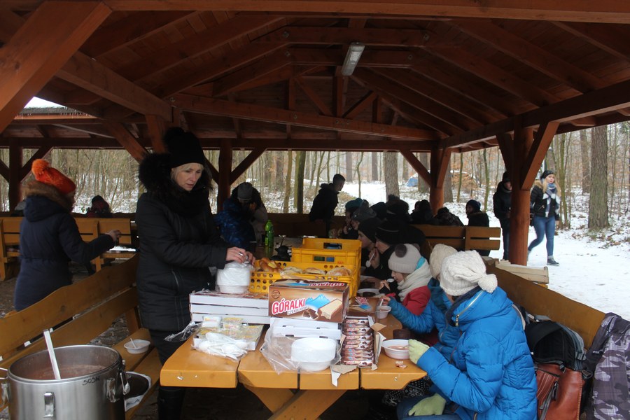 Po 3-godzinych, intensywnych zajęciach terenowych i po rozłożeniu w wyznaczonych miejscach pokarmu dla ptaków i zwierząt, wszyscy uczestnicy akcji udali się na ciepły posiłek. Na dzieci i młodzież oraz na gospodarzy i opiekunów czekała gorąca herbata i kawa zbożowa oraz pyszna pomidorówka i pieczone kiełbaski. Były także słodkie i owocowe smakołyki.