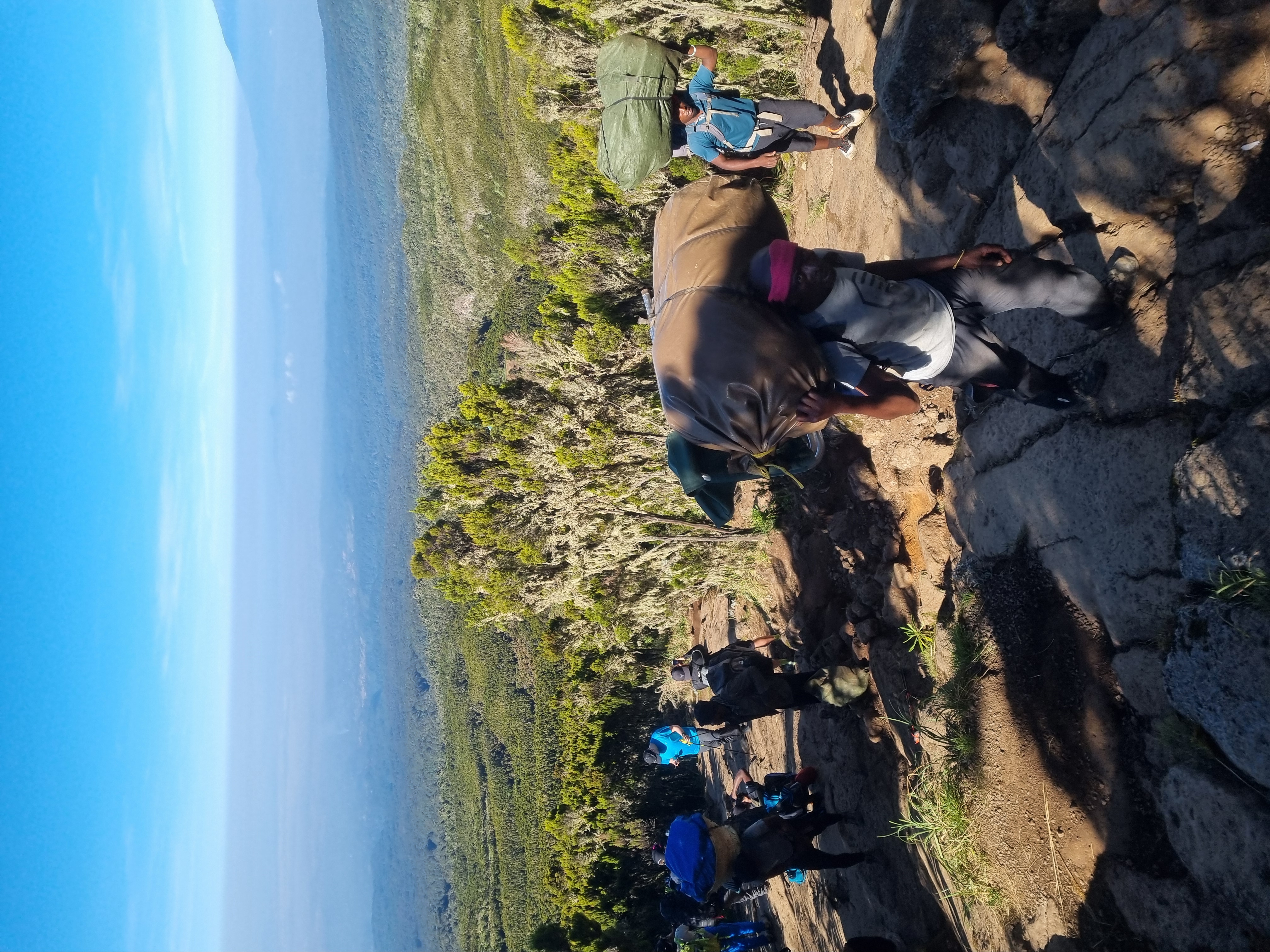 Po śniadaniu na które najczęściej dostawaliśmy zupę mleczną, tosty z różnymi dodatkami, mango i awokado ruszyliśmy w drogę. Szybko wysokie drzewa zastąpiły skarłowaciałe, iglaste. Coś na wzór naszej kosodrzewiny, która jednak w Polsce rośnie na znacznie mniejszej wysokości. Do następnego obozu mieliśmy do pokonania jedynie 5 km, ale także niemal 1000 m przewyższenia. W Polskich górach takie odcinki można robić bez problemu, jednak w naszym przypadku znaczenie miała wysokość. Obóz Shira Camp wznosił się na 3847 m n.p.m. By proces aklimatyzacji przyspieszyć po obiedzie i odpoczynku razem z przewodnikiem wyszliśmy na ponad godzinny „spacer” na wysokość ok. 4200 m.