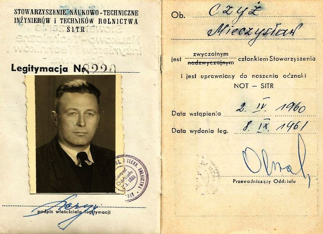 2 kwietnia 1962 r. wstąpił do Stowarzyszenia Naukowo-Technicznego Inżynierów i Techników Rolnictwa SITR Oddział w Zielonej Górze (legit. Nr 8220).